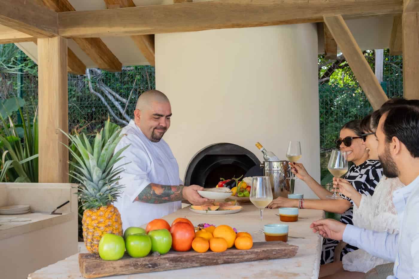 En Casa Azul, la gastronomía se despliega como una experiencia íntima y flexible que se adapta al ritmo del día en lugar de seguir una estructura fija, fusionando ingredientes caribeños frescos, sabores locales y una preparación cuidadosa en una cocina que se siente tanto refinada como profundamente reconfortante.