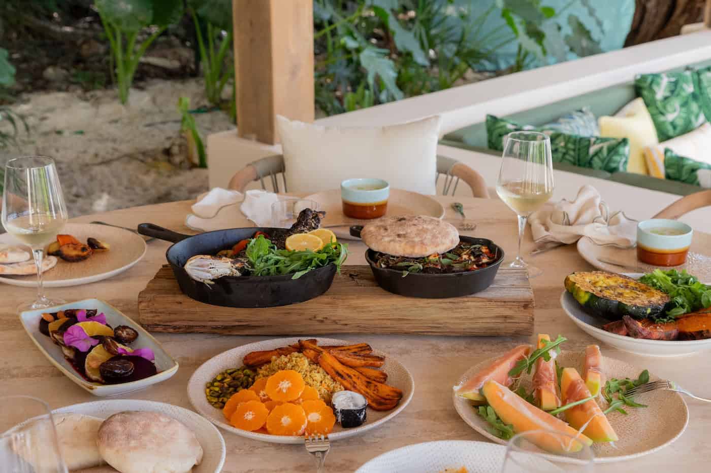 En Casa Azul, la gastronomía se despliega como una experiencia íntima y flexible que se adapta al ritmo del día en lugar de seguir una estructura fija, fusionando ingredientes caribeños frescos, sabores locales y una preparación cuidadosa en una cocina que se siente tanto refinada como profundamente reconfortante.